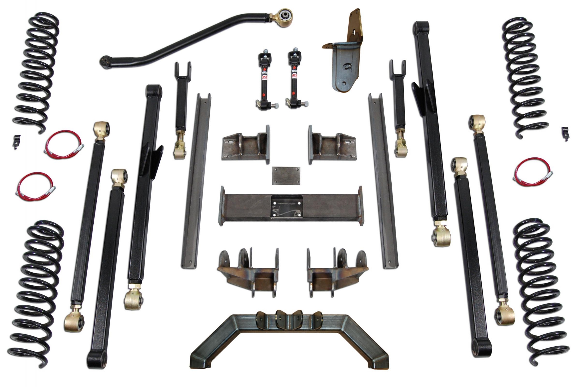 This specific 5.0 inch Grand Cherokee ZJ lift kit was designed to run 31-32 inches tires or 33s and up with some fender trimming. Kit includes, a front 3 piece cross member, unibody rails, rear frame brackets, rear 4 link truss, all 8 adjustable control arms with hardware, front and rear coil springs, front and rear brakelines, front adjustable track bar and bracket, front sway bar disconnects and front spring retainers.