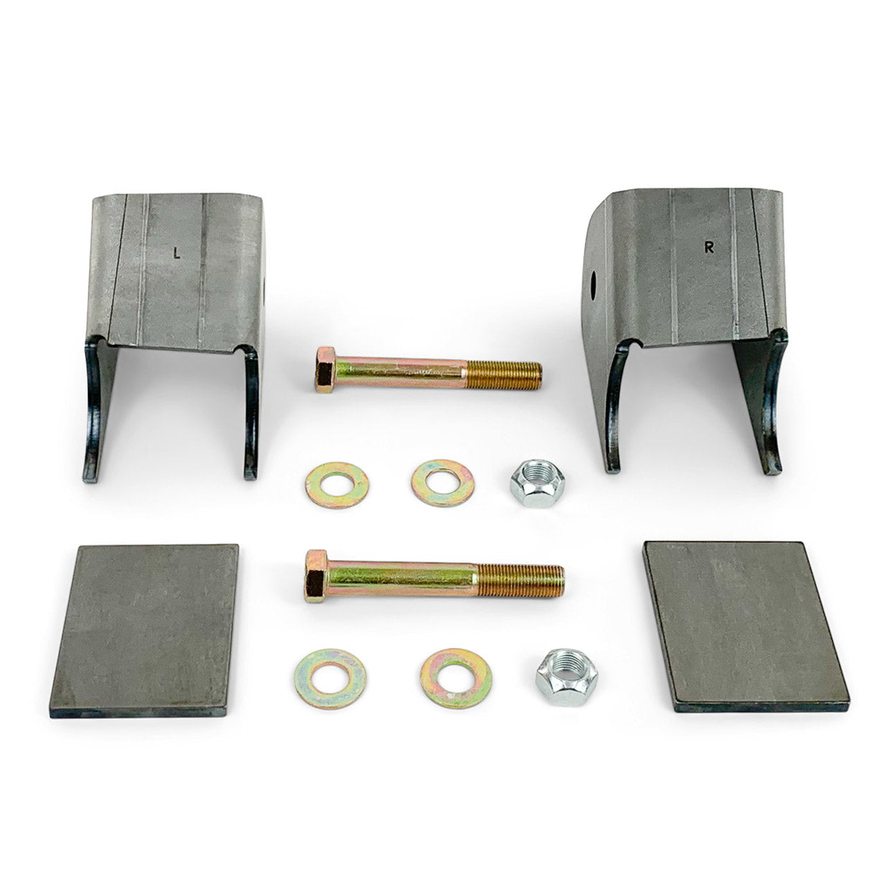 Properly position your new heavy duty mounts using our helpful laser cut markings and weld them on. The flat bracket is intended to be welded to the front as a skid plate and brace to help strength the bracket, and protect your control arms from any new damage.