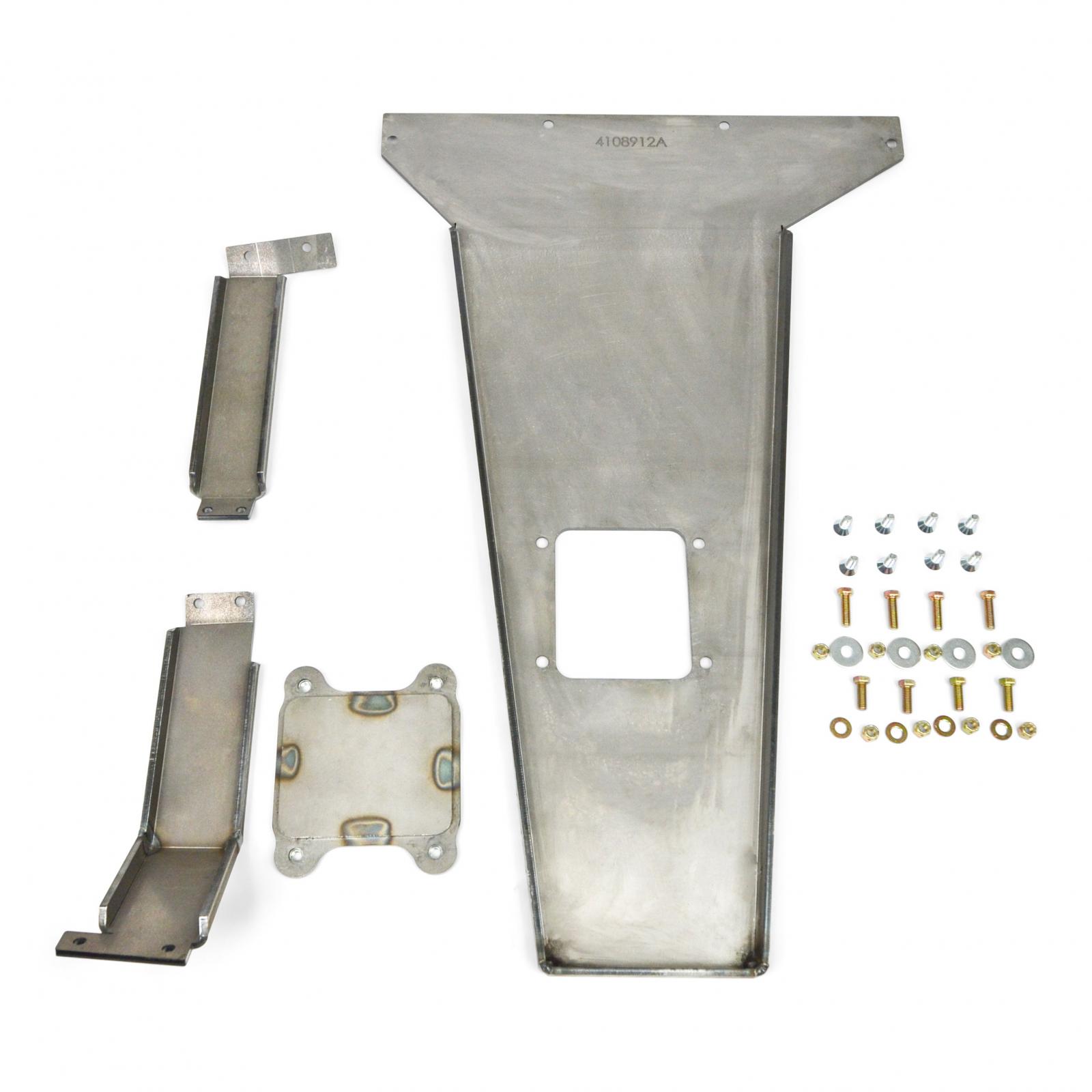 This skid plate offers a easy access drain hole to easily change your oil. The 1/4 front supports bolt into the stock motor mounts using grade 8 hardware. The skid plate was designed to be used with our 3 piece long arm cross member.